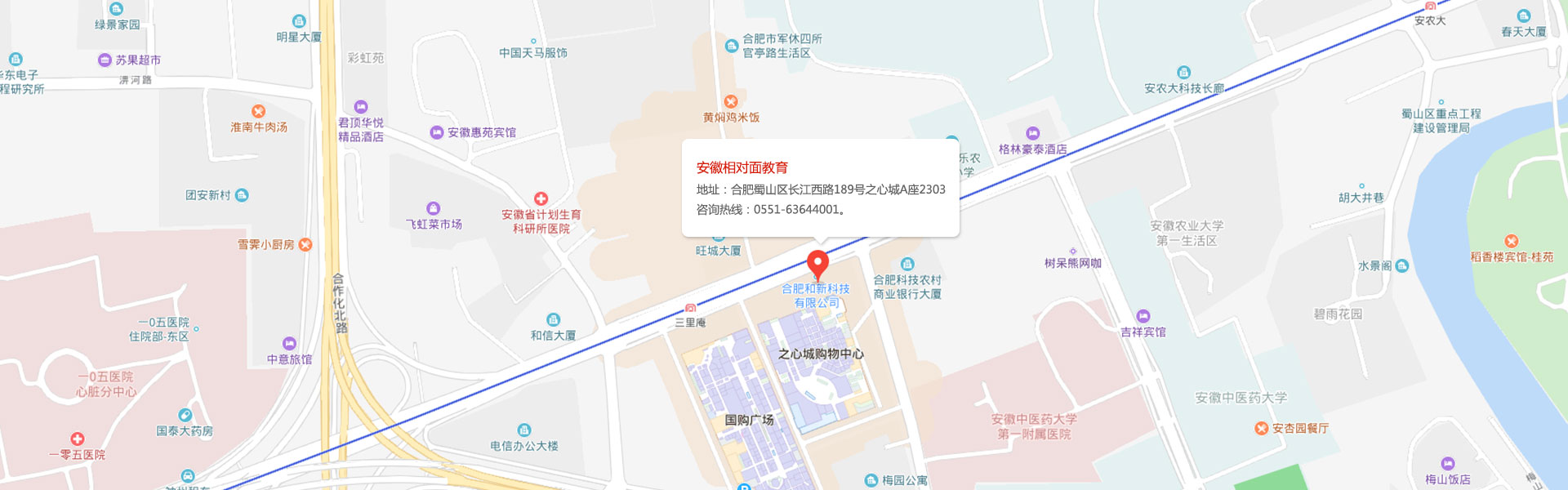 地址:合肥長江西路189號之心城A座23F(地鐵2號線三里庵站C、M出口)